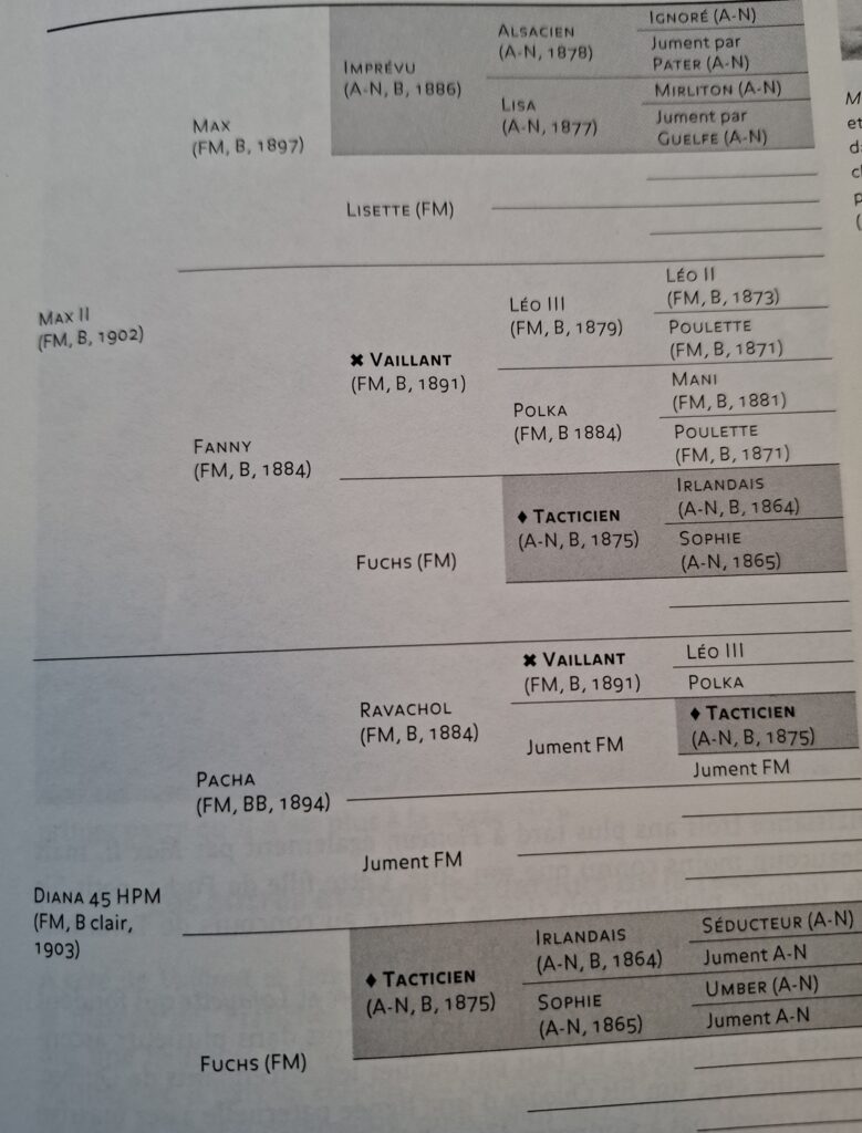 Imprévu, chef de race n°2, deze donkerbruine hengst wordt meteen goedgekeurd door iedereen. In 1901 zijn er bv 57 van zijn merrieveulens beloond met een premie in de Jura. Allemaal beschikken ze over en goede rug en elegante bewegingen.