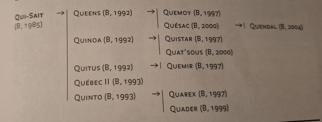 De Q-lijn? Hierover lezen we dat ze uitzonderlijk goed bewegen maar vaak nogal koppig zijn, onderhevig aan stress en niet zo uithoudend als de andere tak. Al de hengsten van de Q-lijn hebben wat ontgoocheld in hun nakomelingen.