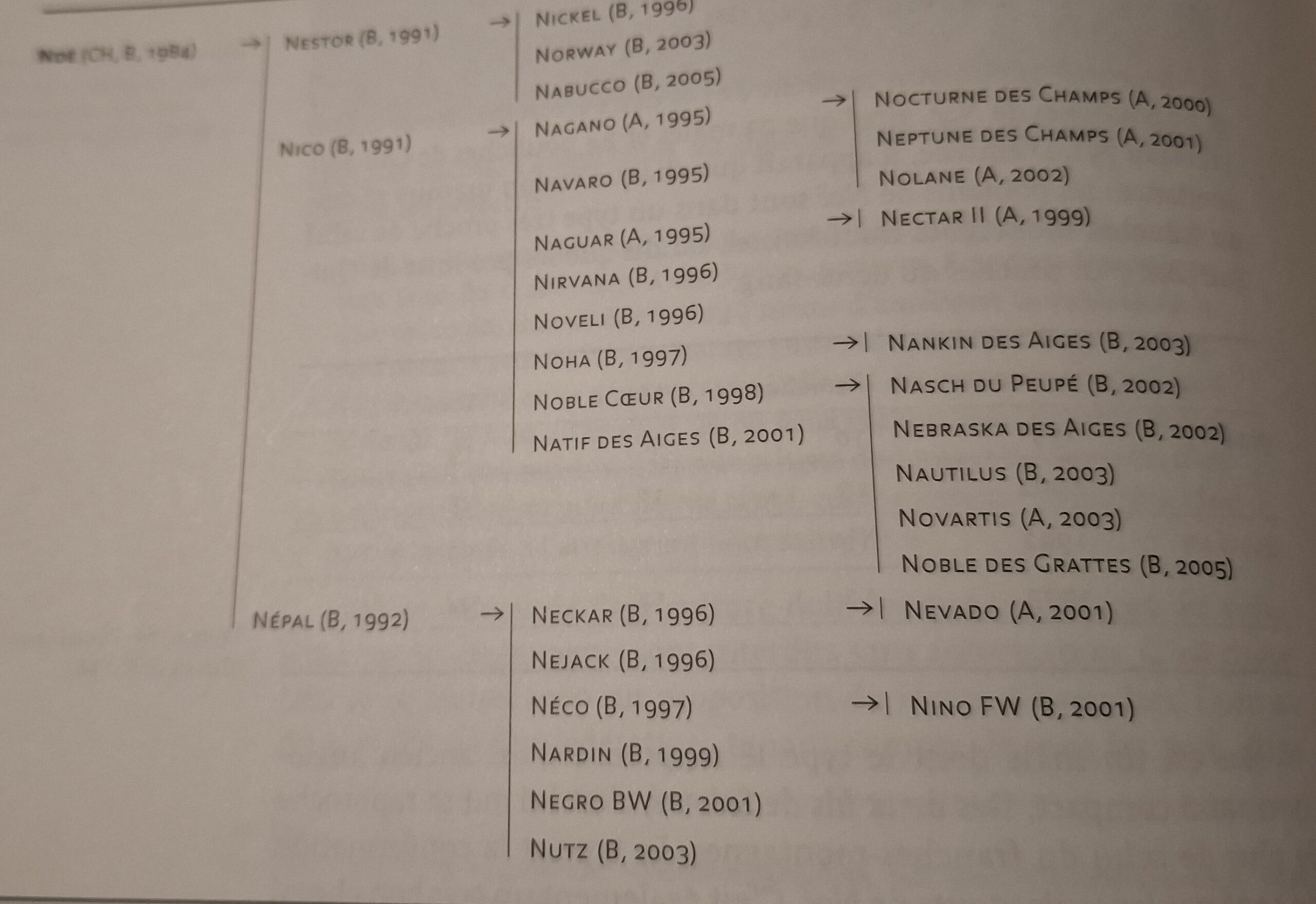 Nelson zal een 20-tal Elite-merries voortbrengen. Zijn mannelijke nazaten kunnen de fokkers niet meteen boeien. Dankzij Joseph Chêne uit Damvent, kreeg zijn stamlijn toch nog succes met Neptune (°1982), Nolo (°1994) en diens zonen Nick (° 1999) en NO LIMIT (°2003)