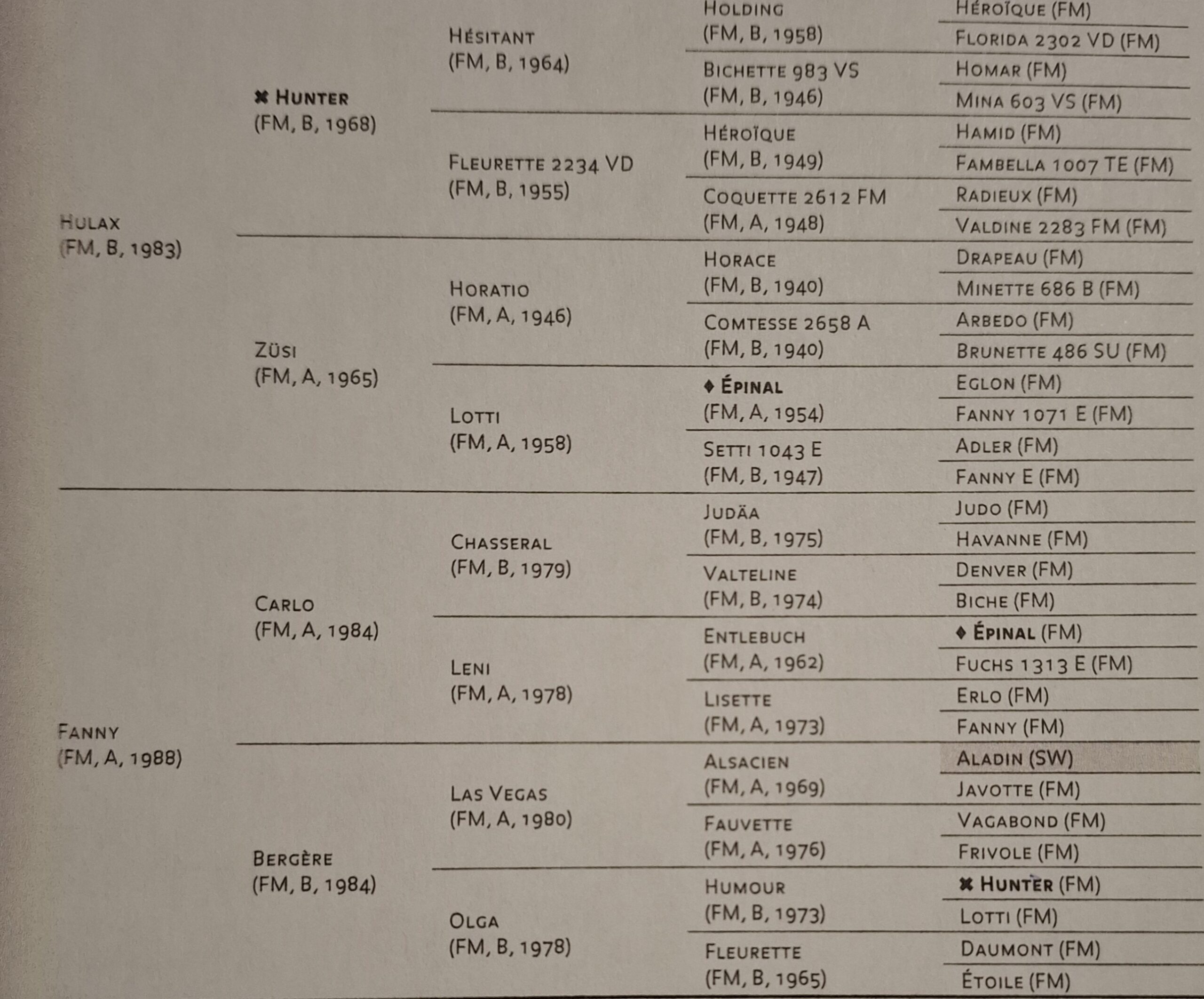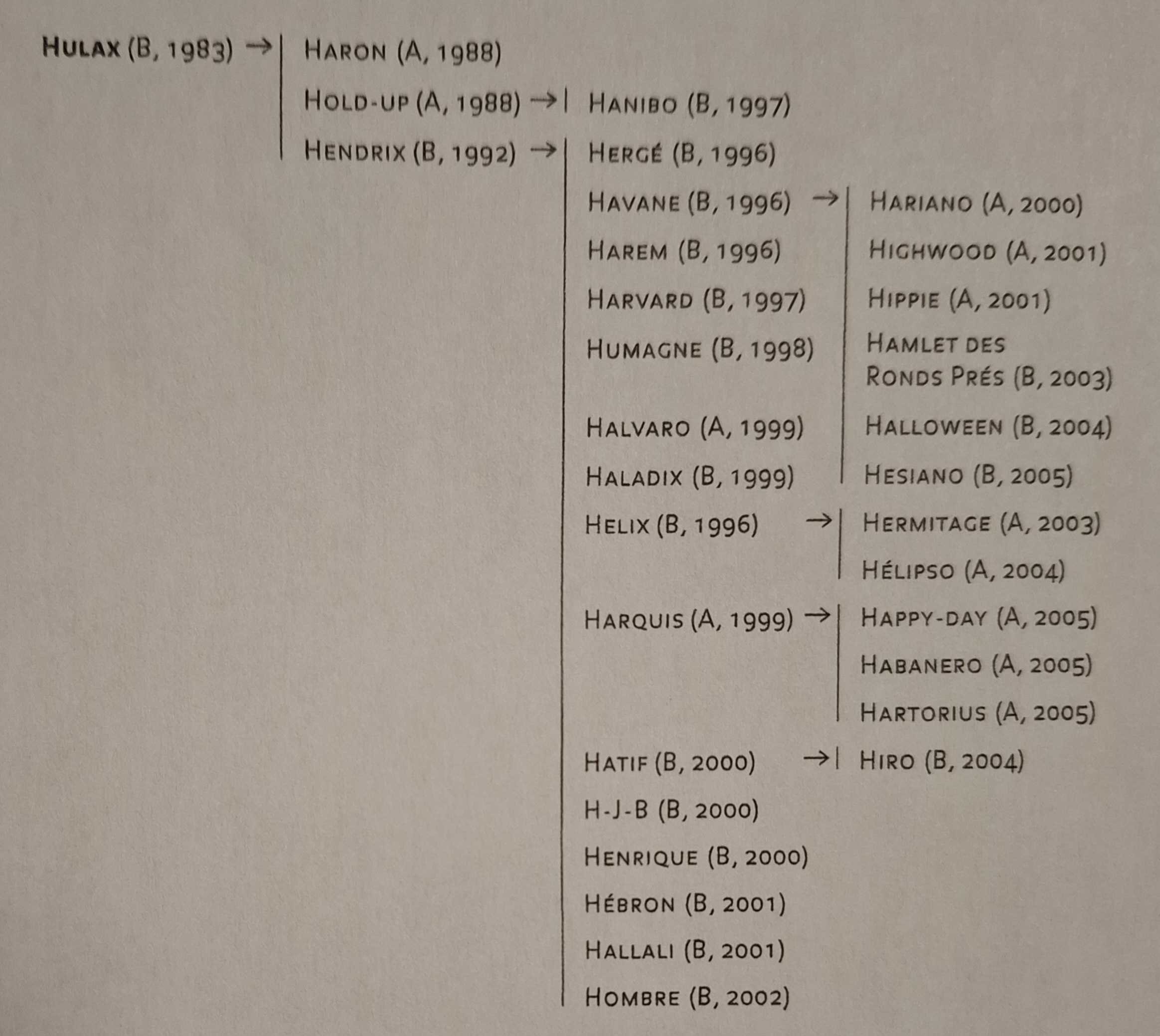 HULAX (°1983) , wordt ook geboren buiten de wieg van het ras, gelijkt wat op het type van Héroïque waardoor hij zou kunnen vergeten worden, mocht hij niet de vader geworden zijn van HENDRIX, op zijn beurt chef van het recente ras.